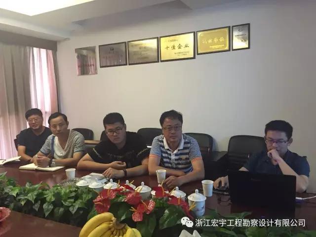 在下午的座谈会上,公司董事长李国庆代表浙江宏宇工程勘察设计有限公司对客人的到来表示由衷地欢迎,公司副总工严建平向卢院长一行人介绍了宏宇公司的基本情况,并表达了希望双方优势互补,在检测等方面加强合作的意愿。