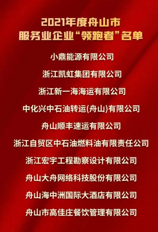 2021年度舟山市服务企业“领跑者”称号